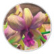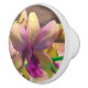 Orkidéerna blommar igen i trädgården, i originalfotot av ZoeSPEAK på denna keramiska knopp för lådor och dörrar. Blommorna, som kommer från en böjd grönt, har lilor som blandas i gult vid petens. Den naturliga träbakgrunden avger skulpturer och färg.