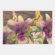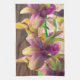 Orkidéerna blommar igen i trädgården, i originalfotot av ZoeSPEAK på köket. Blommorna, som kommer från en böjd grönt, har lilor som blandas i gult vid petens. Den naturliga träbakgrunden avger skulpturer och färg.