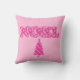Dekorativ kudde i NOEL ord art med Julgranar som mönster - djup fuchsia och rosans nyans, med fuchsia rosa candy striped träd