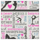 Detta gymnastiktyg presenterar en vitbakgrund som täckas med gymnastik, benämner i en variation av typsnitt och färgar. Det finns 4 olika gymnastsilhouettes.