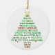 Hängning denna unika prydnad på ditt träd! Det innehåller alla magical ord av jul i forma av ett träd. Personifiera också med år och din familj namn på baksidaen!
