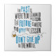 Uppmuntrancitationstecken, med skämtsam typografi. "Är förflutnan var du som är lärd kursen, framtiden är, var du applicerar kursen, inte ger sig upp i den mellersta" underbaren för studenter!