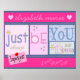 Den här lysande, visuella poster är för din tonåring dotter! "Bara alltid vara du" poster kärlek mamma, gör en omhuldad gåva till kom i åratal! Färg ska komplimentera alla tonåring flickors sovrum, rosa, sage, blått och lila. Den inspirerande texten lyder: "Bara alltid vara du..."Det räcker bara", kommer du att tonåring en känsla av egenvikt i ge. En anteckning fästs vid poster, den lyder "Viktigt". Era döttrar namn är personlig! Anpassa rosa bakgrund färg, namn och kärlek mamma-text-klicka på Anpassa och redigera färger.
