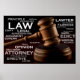 En trädomares gavel över en svart bakgrund och många ord som beskriver rättsindustrin.