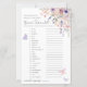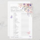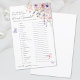 En livstid för Butterflies Möhippa Ord Scramble Game. Lägg till en roligt och visuell aktivitet i möhippan med det här fantastiska ord-spelet, perfekt för ett tema "En livslängd för Butterflies" firande. Gästerna kan försöka att ta bort en lista över bröllop och kärlek-relaterat ord och skriva sina svar på de tillgängliga utrymmena. Utformningen har känsliga vildblommor med vattenfärg placerade i det övre hörnet av högerna, där rosa och lila fjärilar smidigt och flytande runt spelet. I paletten i färg finns mjuka pinkar, dammig ro, lilak, lavender, violett och färska gröntar för ett drömmande, romantiskt utseende. Speltexten visas i en blandning av handskript för elegant och rent serif typsnitt, skapar både snyggt och läsbarhet. Anpassadet är helt, du kan redigera ord, svara nyckel, typsnitt och färg för att matcha ditt möhippa tema. Den här aktiviteten ger en ljuvlig och lekfull känsel till att fira den blivande bruden.