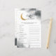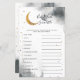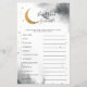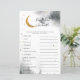 Tvätta över temat babydusch baby ord med skrampkort för måne med vattenfärg stänk i grått med faux guld måne och stjärnor. Listan över ord på detta kort gäller spädbarn, och den är uppdelad. Gästerna kommer att tävla, som kan lösa upp alla först! SVAR NYCKEL: 1. bilsäte 2. mjölk 3. lekplats 4. nappar 5. blöjor 6. rockstol 7. dagis 8. baby monitor 9. svalg 10. formel 11. gummiducky 12. barnvagn.