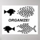 En visuell illustration av begreppet "det finns styrka i siffror". En stor fisk jagar många små fiskar tills de organiserar sig i form av en ännu större fisk, som förvandlar bord och jagar den fisk som ursprungligen jagade dem.