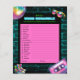 Lägg till lite hjärngympa och kul på din 90-talsinspirerade födelsedagsfest med Neon Vibes: 90s Disco Födelsedags Ordkluring. Detta färgglada spelark innehåller en blandning av födelsedags- och 90-talsrelaterade ord, alla blandade och klara för dina gäster att lista ut. Nyckel: 1. inbjudan 2. konfetti 3. inslagna 4. vänner 5. disco 6. fira 7. födelsedag 8. överraskning 9. nedräkning 10. champagne 11. dansande 12. dricka 13. kalas 14. jukebox 15. graffiti 16. glass 17. kassett 18. retro 19. ballong. Alla orden är anpassningsbara, så att