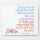 Lita på Herren av hela ditt hjärta och luta dig inte till din egen förståelse. I alla dina vägar erkänn honom, så ska han rätta dina stigar. Ordspråksboken 3:5-6 Kristet formspråk.