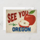 Ett charmigt Oregon vintage resor-vykort med ett vackert rött äpple, tillsammans med texten från roligt retro stil där det står: "Vi ses i Oregon"