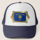 Den utformning som är tryckt på denna hatt har den Oregoniska flagga omgiven av ett metalliskt tittar ram.