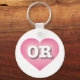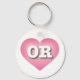 Den här nyckelkedjan har ett rosa hjärta med ett vitt tvättat centrum som innehåller fet, vitt, övre brev ELLER, officiellen förkortning för Oregon, bäver-läget.