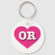 Den här nyckelkedjan har ett pulserande shock rosa som innehåller fet, vit, övre fodral brev ELLER, officiellen förkortning för Oregon, bäver-läget.
