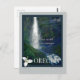 En digital målning av ett vattenfall som hittats längs Multnomah Falls spårväg i Oregons Columbia River Gorge Scenia Area. Det vita numret i det övre hörnet är det år då Oregon blev ett tillstånd. Den vita texten i centrum av målningen, "Hon flyger med sitt eget vingar", är mottot för tillståndet. Grund i målningen finns en vit trilliumblomma bredvid Oregon i vitt brev. Ett enkelt mörk blått gräns avslutar målningen. Upphovsrätt ©2023 Kimberly J Tilley.