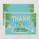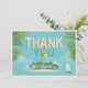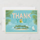 Tack för ert kort. Det är en tropisk ö, segelbåt, handflatan träd och fiskmås.