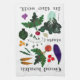 Lökar, kål, aubergineet, tomater, bönor och beta målade med text "bra vård- starter i smutsa". ©TR FORSMAN. ORIGINAL- MÅLNING AV TEXTURERADE GRÖNSAKER.