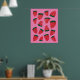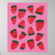 Organiska sommarjordgubbar röda vid rosans bakgrun poster