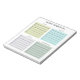 Non-sticky notepad, personalized with your name, for to do lists and daily organizing with four categories: asap, soon, later, whenever. Green, blue, gray, and olive. A practical, clean look. Customizable text and neutral colors.