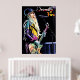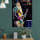 Bilden har Orianthi, en kvinnlig guitarist i sten, som utför scenen. Hon bär en svart hatt, ett läder jacka med vibrant färg och hennes långa blonda hår flödar ner henne bakåt. Hon håller en mycket färgad elgitarr med intrikat mönster, och hennes hand är på fribordet. Bakgrunden är mörk, med mikrofonstativ och en stegremsa synlig.