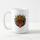 En slående, orientalisk drake med rött, orange och tealtoner med feta svarta konturer. Symbol för styrka, visdom och kraft - perfekt visas på detta unika mugg.