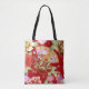 En fläkt i orientaliskt läge på en japansk blomma i mönster. I färg i guld, rött och rosa.