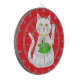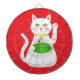 Den här fantastisk-dart-skivan har en grafisk designbild av en lyckad, orientalisk vit vrakkatt. Katten har ett vackert guld öga och bär en medallion från guld på halsbandet runt nacke. Katten har rosa öron och whisky. Det här söta lilla kattunge håller en gulddräkt med gröntens jade inlay och ett meddelande i guldtexten som säger "Lycka till".