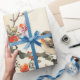 A delicate Chinoiserie-inspired seamless pattern wrapping paper featuring two graceful songbirds perched on blossoming plum branches. Rendered in a soft watercolor style with warm shades of orange, cream, and brown, this design evokes the serenity and charm of traditional East Asian art. This pattern brings an elegant balance of nature, artistry, and timeless beauty.