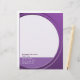 Ett modernt brevhuvud som får dig eller ditt företag att framträda! Utformningen baseras på stora metallcirklar som omger brev. Bakgrunden är uppdelad i två vågräna som du kan justera eller förenkla genom att ta bort det halvgenomskinliga lagrar. Ditt namn och din kontaktinformation har tryckts på den nedre delen, på den mörkare delen. Varje text i inslag kan enkelt anpassas och du kan också ändra storlek på, flytta eller ta bort. Text färg, teckensnitt och storlek kan också ändras. Som standard är baksidans bakgrund lila för det mest täckta av ett halvgenomskinligt vitt lagrar. Det får färg att blunda, och det är upp till dig hur du vill att färg ska ha det här brevhuvudet. Färg i det metalliska ringar kan inte justeras, men det finns många färg-versioner av denna produkt från KreaturShop. Leta efter matchande affärskort, brevhuvud, kuvert och post-it-dynor!