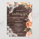 Skicka dina gäster en vacker bröllopsinbjudan tack vare detta trä & spets med rosa och persika blommor. Perfekt för rustika, landsbygdens och bakgårdsbröllop.