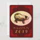 Originalritning av en gris med 2019 (handskrift) inuti grisen, Teckning i en oval form på genomskinlig bakgrund. Design på vertikal platt kort inbjudan med kinesisk ram och mörkröd bakgrund + gyllene texturerad bild baktill. Du kan enkelt ändra text (typsnitt, storlek, färg och position) och bakgrundsfärg genom att klicka på anpassa-knappen. Glöm inte bort hela samlingen av gratulationskort, vykort och mer... Perfekt för kinesiskt och vietnamesiskt nyår för grisen 2019. --------- "Grisen (豬) är det tolfte och sista tecknet för de jordiska grenarna (亥). I den kontinuerliga Sexagesimala cykeln motsvarar vart tolfte år Hai, och kallas vanligen "Grisens år" (豬年). Det finns fem typer av grisar, uppkallade efter de kinesiska elementen. I ordning är de: Metall, Vatten, Trä, Eld och Jord.