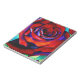 med originalutformningen av den röda engelska ro-makroblomman från den ursprungliga vattenfärgsmålningen av Sacha Grossel Art. Stor närhet till den blå blomman med blå högdagrar som inspirerats av kärlek och passion.