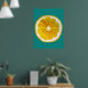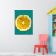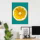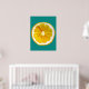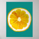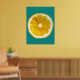En söt och färglös, pulserande citronfruktsbit av gulten från en originalmålare av konstnären Sacha Grossel. Denna stora popkonsfrukt från stil är gult och mycket skarp och färglös mot anpassadets blå färgad. Quirky och original.