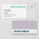 Diskret mönster med rosa och grått och namn på ena sidan, alla övriga uppgifter på den andra, enhetlig skrift i tre snitt, elegant utformad. Perfekt för advokater.