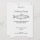 En enkel & minimalistisk fiskfest inbjudan med en illustration av en öring i linjekonst. Du kan använda den till en pension, en födelsedag, en utomhusfest, en fisk-BBQ, etc.