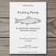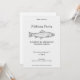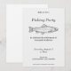 En enkel och minimalistisk fiskefest-inbjudan med en illustration av en öring i linjekonst. Du kan använda den till en pensionering, en födelsedag, en utomhusfest, en grillfest med fisk, osv.