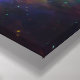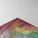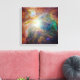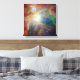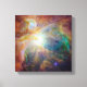 Ett ljust och färglöst rymden-foto av orionnebulan. Turkos gult och orange eterala plasmagaser med ljusa högdagrar skapar en färgstark sammansättning.