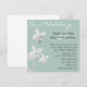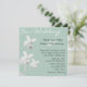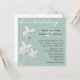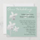 Stilren anpassad bröllopsinbjudan i ljust grön. Fyrkantig inbjudan gjord i ljust grönt, med grafik av vita orkidéer på vänster sida. Vårt Bröllop i elegant vit text tvärs över toppen av denna vackra inbjudan. All text är gjord i vitt eller svart och kan anpassas för att passa dina bröllopsbehov. Den fyrkantiga formen kan kräva extra porto vid postning, kontrollera med din lokala posttjänst.