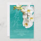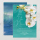 Orkidéer Mors dag-kort med tackmeddelande. Stor skrift för den övre texten. Exemplet är "älskar dig Nanna" med stycke för ditt meddelande. Realistiska vita orkidéer pryder tealblå-gröna kort med havsvattenbakgrund. Mer vatten finns på baksidan, och designen finns som en omedelbar nedladdning samt tryckt med pappersuppgraderingar.