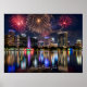 Orlando Florida Skyline with Lake Eola Fireworks Poster