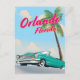 Orlando Florida, vacker reseaffisch i vintage stil för en gammal retrobil och handflatan träd.
