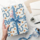 Ormar och äpplen i blått och gult. Upprepa panelen mönster.