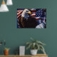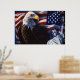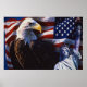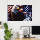 poster i örn 4 juli kommer med ett vackert Örn sitta och tittar vid Frihetsgudinnan och en amerikansk flagga bakom sig. Detta är ett vackert foto på denna poster