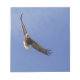 En vuxen örn i en vass vändning som framhävs av blå himmel.