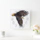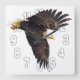 Ett vackert örn sträcker ut sitt vingar framåt precis efter att ha lämnat sitt perk på träd