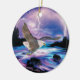Upptäck Julgran med den här unika Örn-prydnaden av typen "en av ett slag". Det är en målning av en Örn som blåser över en Moonlit-flod i en åskstorm! Original Fine Art Painting by Artist Kerry Miller.