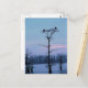 Detta postkort har ett foto av två örn sitta ovanpå träd med rosa himlar från en solnedgång i bakgrunden.