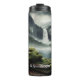 Ett stort örn ligger på ett graverande sätt över en pristinkande vildmark med ett kaskadande vattenfall och ett mistiskt skogslandskap. På scenen framträder lugn och naturskönhet, vilket belyser den orörda miljön och de hårda bergen. Denna kraftfulla bild firar frihet, frid och den annalkande vildmarken.