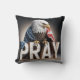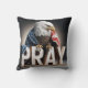 En stor örn är nedbruten i en amerikansk flagga, som är upphöjt över brev med texten "PRAY".