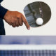 Ett örn med en vingspets som betar yta i sjö. Foto av Richard Lee.