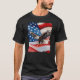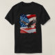 Den här t-tröjan har en design med örn och en amerikansk flagga i bakgrunden. Den här t-tröjan skulle vara underbar till bära den 4 juli eller någon annan dag för att visa din patriotism.